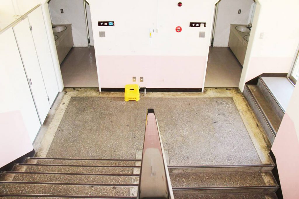 Building A・B is two stories high, and there are toilets and an emergency exit located on the landing between the first and second floors.